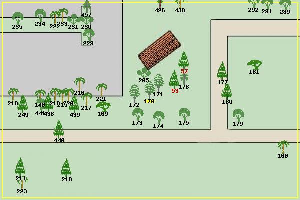 #53 Canary Island Pine Pinus canariensis #57 Canary Island Pine Pinus canariensis #140 Windmill Palm Trachycarpus fortunei #160 Canary Island Date Palm Phoenix canariensis #169 Canyon Live Oak Quercus chrysolepis #170 Black Locust Robinia pseudoacacia #171 Black Locust Robinia pseudoacacia #172 Black Locust Robinia pseudoacacia #173 Bay Laurel Umbellularia californica #174 Pittosporum Pittosporum sp? #175 Bay Laurel Umbellularia californica #176 Italian Cypress Cupressus sempervirens #177 Cedar Deodara Cedrus deodara #179 California Pepper Tree Schinus molle #180 Monterey Pine Pinus radiata #181 California Live Oak Quercus agrifolia #205 Lemon Tree Citrus limon #210 Monterey Pine Pinus radiata #211 Monterey Pine Pinus radiata #215 Windmill Palm Trachycarpus fortunei #216 Windmill Palm Trachycarpus fortunei #217 Windmill Palm Trachycarpus fortunei #218 Windmill Palm Trachycarpus fortunei