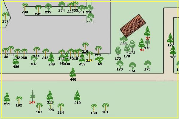 #53 Canary Island Pine Pinus canariensis #57 Canary Island Pine Pinus canariensis #138 Windmill Palm Trachycarpus fortunei #140 Windmill Palm Trachycarpus fortunei #142 Windmill Palm Trachycarpus fortunei #144 Windmill Palm Trachycarpus fortunei #147 Monterey Cypress Cupressus macrocarpa #161 Guadalupe Palm Brahea edulis #167 California Fan Palm Washingtonia filifera #168 Mexican Fan Palm Washingtonia robusta #169 Canyon Live Oak Quercus chrysolepis #170 Black Locust Robinia pseudoacacia #171 Black Locust Robinia pseudoacacia #172 Black Locust Robinia pseudoacacia #173 Bay Laurel Umbellularia californica #174 Pittosporum Pittosporum sp? #175 Bay Laurel Umbellularia californica #176 Italian Cypress Cupressus sempervirens #177 Cedar Deodara Cedrus deodara #180 Monterey Pine Pinus radiata #192 Windmill Palm Trachycarpus fortunei #200 Windmill Palm Trachycarpus fortunei #205 Lemon Tree Citrus limon #210 Monterey Pine Pinus radiata #211 Monterey Pine Pinus radiata #212 Monterey Pine Pinus radiata #215 Windmill Palm Trachycarpus fortunei