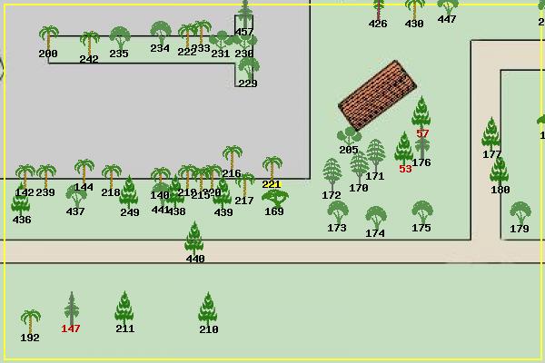#53 Canary Island Pine Pinus canariensis #57 Canary Island Pine Pinus canariensis #140 Windmill Palm Trachycarpus fortunei #142 Windmill Palm Trachycarpus fortunei #144 Windmill Palm Trachycarpus fortunei #147 Monterey Cypress Cupressus macrocarpa #169 Canyon Live Oak Quercus chrysolepis #170 Black Locust Robinia pseudoacacia #171 Black Locust Robinia pseudoacacia #172 Black Locust Robinia pseudoacacia #173 Bay Laurel Umbellularia californica #174 Pittosporum Pittosporum sp? #175 Bay Laurel Umbellularia californica #176 Italian Cypress Cupressus sempervirens #177 Cedar Deodara Cedrus deodara #179 California Pepper Tree Schinus molle #180 Monterey Pine Pinus radiata #192 Windmill Palm Trachycarpus fortunei #200 Windmill Palm Trachycarpus fortunei #205 Lemon Tree Citrus limon #210 Monterey Pine Pinus radiata #211 Monterey Pine Pinus radiata #215 Windmill Palm Trachycarpus fortunei #216 Windmill Palm Trachycarpus fortunei #217 Windmill Palm Trachycarpus fortunei