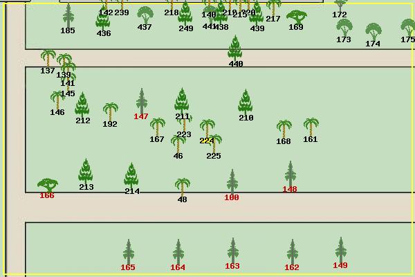 #46 Canary Island Date Palm Phoenix canariensis #48 Senegal Date Palm Phoenix reclinata #100 Monterey Cypress Cupressus macrocarpa #137 Windmill Palm Trachycarpus fortunei #139 Windmill Palm Trachycarpus fortunei #140 Windmill Palm Trachycarpus fortunei #141 Windmill Palm Trachycarpus fortunei #142 Windmill Palm Trachycarpus fortunei #145 Windmill Palm Trachycarpus fortunei #146 Windmill Palm Trachycarpus fortunei #147 Monterey Cypress Cupressus macrocarpa #148 Monterey Cypress Cupressus macrocarpa #149 Monterey Cypress Cupressus macrocarpa #161 Guadalupe Palm Brahea edulis #162 Monterey Cypress Cupressus macrocarpa #163 Monterey Cypress Cupressus macrocarpa #164 Monterey Cypress Cupressus macrocarpa #165 Monterey Cypress Cupressus macrocarpa #166 Cork Oak Quercus suber #167 California Fan Palm Washingtonia filifera #168 Mexican Fan Palm Washingtonia robusta #169 Canyon Live Oak Quercus chrysolepis #172 Black Locust Robinia pseudoacacia #173 Bay Laurel Umbellularia californica
