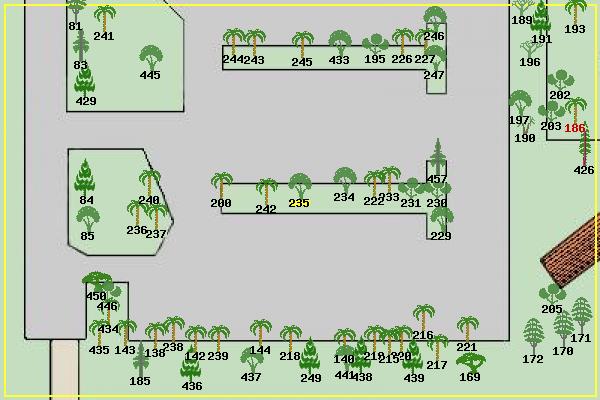 #81 Blackwood Acacia Acacia melanoxylon #83 Incense Cedar Calocedrus decurrens #84 Spanish Fir Abies pinsapo #85 California Buckeye Aesculus californica #138 Windmill Palm Trachycarpus fortunei #140 Windmill Palm Trachycarpus fortunei #142 Windmill Palm Trachycarpus fortunei #143 Windmill Palm Trachycarpus fortunei #144 Windmill Palm Trachycarpus fortunei #169 Canyon Live Oak Quercus chrysolepis #170 Black Locust Robinia pseudoacacia #171 Black Locust Robinia pseudoacacia #172 Black Locust Robinia pseudoacacia #185 Incense Cedar Calocedrus decurrens #186 Pindo Palm Butia capitata #189 Dracaena Dracaena #190 Yucca Yucca sp. #191 Blue Atlas Cedar Pendula Cedrus atlantica #193 Queen Palm Syagrus romanzoffianum #195 Chinese Photinia Photinia serratifolia #196 Dracaena Dracaena #197 Crape Myrtle Lagerstroemia indica #200 Windmill Palm Trachycarpus fortunei #202 Japanese Loquat Eriobotrya japonica #203 Japanese Loquat Eriobotrya japonica #205 Lemon Tree Citrus limon #215 Windmill Palm Trachycarpus fortunei #216 Windmill Palm Trachycarpus fortunei #217 Windmill Palm Trachycarpus fortunei #218 Windmill Palm Trachycarpus fortunei #219 Windmill Palm Trachycarpus fortunei #220 Windmill Palm Trachycarpus fortunei #221 Windmill Palm Trachycarpus fortunei #222 Mediterranean Fan Palm Chamaerops humilis