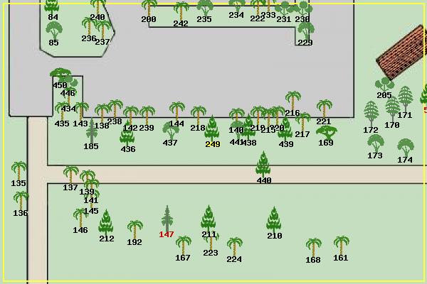 #84 Spanish Fir Abies pinsapo #85 California Buckeye Aesculus californica #135 Windmill Palm Trachycarpus fortunei #136 Windmill Palm Trachycarpus fortunei #137 Windmill Palm Trachycarpus fortunei #138 Windmill Palm Trachycarpus fortunei #139 Windmill Palm Trachycarpus fortunei #140 Windmill Palm Trachycarpus fortunei #141 Windmill Palm Trachycarpus fortunei #142 Windmill Palm Trachycarpus fortunei #143 Windmill Palm Trachycarpus fortunei #144 Windmill Palm Trachycarpus fortunei #145 Windmill Palm Trachycarpus fortunei #146 Windmill Palm Trachycarpus fortunei #147 Monterey Cypress Cupressus macrocarpa #161 Guadalupe Palm Brahea edulis #167 California Fan Palm Washingtonia filifera #168 Mexican Fan Palm Washingtonia robusta #169 Canyon Live Oak Quercus chrysolepis #170 Black Locust Robinia pseudoacacia #171 Black Locust Robinia pseudoacacia #172 Black Locust Robinia pseudoacacia #173 Bay Laurel Umbellularia californica #174 Pittosporum Pittosporum sp? #185 Incense Cedar Calocedrus decurrens #192 Windmill Palm Trachycarpus fortunei #200 Windmill Palm Trachycarpus fortunei #205 Lemon Tree Citrus limon #210 Monterey Pine Pinus radiata #211 Monterey Pine Pinus radiata #212 Monterey Pine Pinus radiata #215 Windmill Palm Trachycarpus fortunei