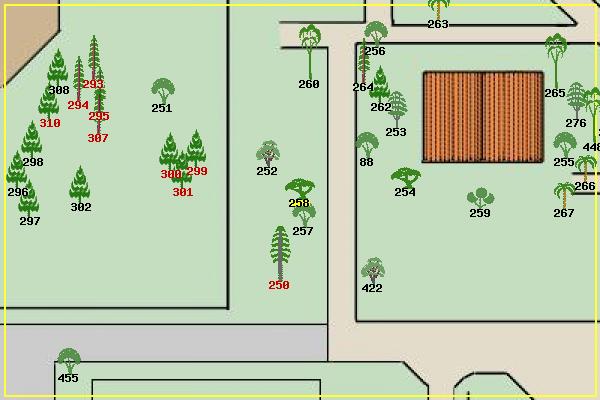 | #276 Fremont Poplar Populus fremontii #293 Japanese Red Cedar Cryptomeria japonica #294 Japanese Red Cedar Cryptomeria japonica #295 Japanese Red Cedar Cryptomeria japonica #296 Cedar Deodara Cedrus deodara #297 Cedar Deodara Cedrus deodara #298 Cedar Deodara Cedrus deodara #299 Canary Island Pine Pinus canariensis #300 Canary Island Pine Pinus canariensis #301 Canary Island Pine Pinus canariensis #302 Cedar Deodara Cedrus deodara #307 Japanese Red Cedar Cryptomeria japonica #308 Pine Pinus sp. #310 Canary Island Pine Pinus canariensis #422 Black Walnut Juglans californica #455 privet Ligustrum ovalifolium