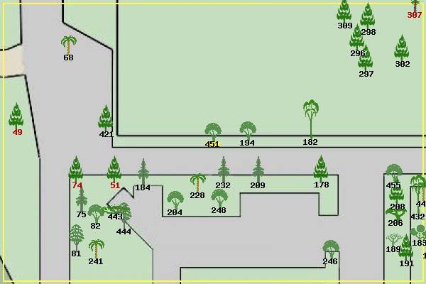 #49 Canary Island Pine Pinus canariensis #51 Canary Island Pine Pinus canariensis #68 Canary Island Date Palm Phoenix canariensis #74 Canary Island Pine Pinus canariensis #75 Incense Cedar Calocedrus decurrens #81 Blackwood Acacia Acacia melanoxylon #82 Floss Silk tree Chorisia speciosa #178 Blue Atlas Cedar Cedrus atlantica #182 Silver Dollar Gum Eucalyptus polyanthemos #184 Canary Island Juniper Juniperus cedrus #189 Dracaena Dracaena #191 Blue Atlas Cedar Pendula Cedrus atlantica #194 Pittosporum Pittosporum #204 Empress Tree Paulownia tomentosa #206 Live Oak Quercus virginiana #208 Cedar Deodara Cedrus deodara