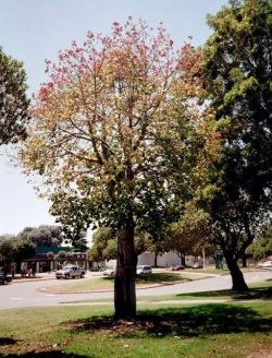 Comments: Broadleaf monsoon deciduous tree native to Australia. Mature trees to 40' with trunk buldging at the base. Specimen tree has pink flowers. Similar to B. acerifolius (Australian Flame Tree) which has scarlet red flowers.