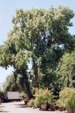 Comments: Broadleaf deciduous tree native to the desert areas of California and the Western States. Fast growing to 80' with a 40' spread. Trees are sexed with female trees producing "cotton" fluff in the spring. Tree was first collected for scientific study by John C. Fremont.