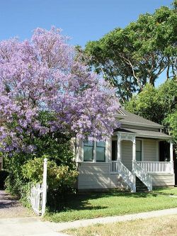 Comments: Deciduous tree native to the dry highlands of Brazil. Mature trees can be 40' to 60' tall and broad spreading. Blue-violet flowers in Summer and bright green double-pinate compound leaves are similar to a mimosa tree. Seed pods are disk shaped to 3" diameter. Young trees are frost sensitive, but mature trees can take temperatures down to -7 deg. F.