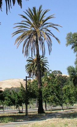 Location: 43500 Mission Blvd Park: Ohlone College Campus District: Mission San Jose Native to: Africa Tree type: palm Leaf retention: evergreen