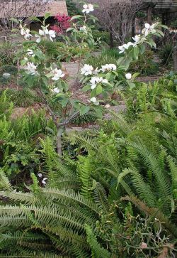 Comments: Broadleaf evergreen flowering tree from Tibet in central Asia. A close relative to the magnolia, this species shares many characteristics; dark green leaves, white to creamy white flowers, and conic to oval mature shape. The specimen is relatively young and therefore small, but mature trees of this species don't get very large--15 to 25 feet tall.