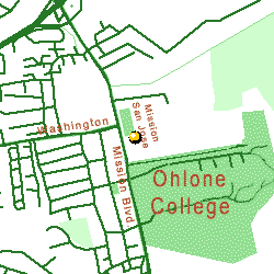 Location: 43300 Mission Blvd. District: Mission San Jose Native to: California Tree type: palm Leaf retention: evergreen