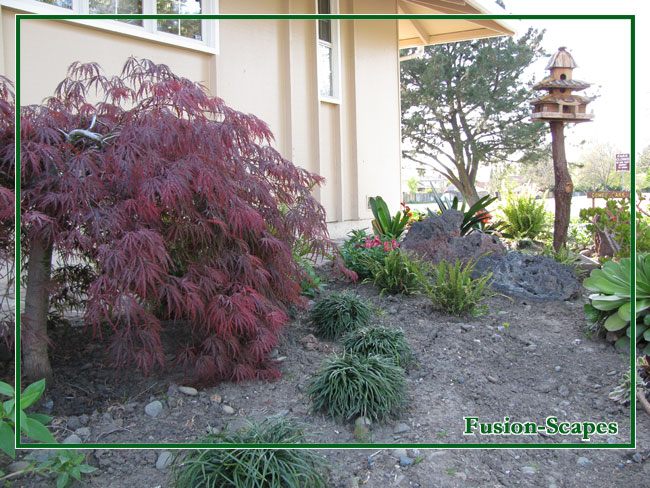 Like natural plant communities my garden designs are self stabilizing. They require little maintenance and even less water, fertilizer or pest control. They exclude weeds once established, are self mulching and require little trimming. This may sound like quite a claim until you consider that my designs us basic principles of natural plant communities. Natural communities generally thrive without leaf blowers, chemical fertilizers and irrigation. Long before the term Carbon Neutral became trendy natural plant communities where building soil by sequestering carbon as humus and leaf mold. The permaculture principles used in fusionscaping sequester carbon in exactly the same way. During the 20th century we developed a belief system that told us science could improve on what nature had done. The detectable results of thinking we could improve on nature were water pollution, soil erosion and ecological destruction. Genetic engineering may be the current result of this belief system trying to prove it is still valid. Until we actually understand how nature works and can duplicate the results we can never improve on it. My gardening philosophy is based on the observable principles of the natural world and functions on the dynamic energy that brought life to our Earth. I create modern landscapes that function on ancient energy for the 21st century.