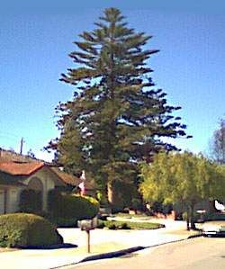 Comments: Conifer, native to Norfolk Island (between Australia and New Zealand). A very formal, pyramidal tree with beautifully proportioned branches spreading out in horizontal planes and densely covered with small, bright green, needle-like leaves. City of Fremont Landmark Tree.