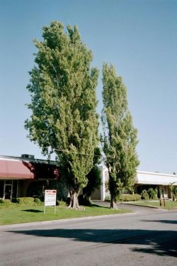 Comments: Tall deciduous tree native to Italy and Southern Europe. Bright yellow triangular shaped green 2" leaves with serrated edges. Leaves flutter in almost any breeze. Trunk light grey to white with vertical scars. Narrow spreading and fast growing to 60'.
