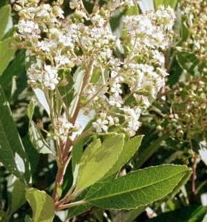 Comments: Broadleaf evergreen native to the local area and much of California. Usually 4' to 8' when mature but can be taller when conditions are good. Small white 5 pointed flowers in clusters in Summer and red BB shaped berries in Winter. Toyon is also know as Christmasberry or California-holly due to the red berries.