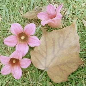 Comments: Broadleaf monsoon deciduous tree native to Australia. Mature trees to 40' with trunk buldging at the base. Specimen tree has pink flowers. Similar to B. acerifolius (Australian Flame Tree) which has scarlet red flowers.