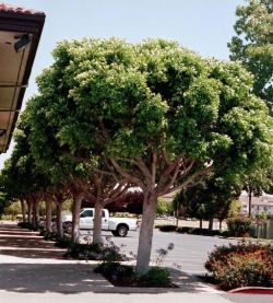 Comments: Evergreen broadleaf native to Malaysia and Indonesia. Dark green 4" oval leaves and gray-white bark. Mature trees to 50' with moderate spreading. Like other ficus species, trees can have aerial roots. Also known as Ficus Microcarpa.