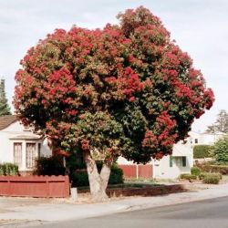 Comments: Broadleaf evergreen, native of western Australia. This tree produces the most attractive red flowers that bloom practically all year round. It is of moderate size and spreading habit. (former scientific name Eucalyptus ficifolia)