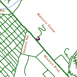 Comments: Broadleaf evergreen, native to Australia. First ones were planted in California in 1856. Probably is the fastest growing tree in the world. Dark green sickle-shaped leaves. White flowers in spring. Fibrous peeling bark. Two rows of Eucalyptus line the road leading to the Masonic Home.