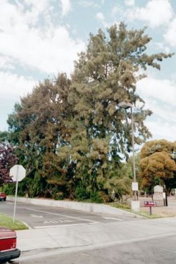 Comments: Broadleaf evergreen, native mostly to Australia. Long, thin, jointed, green branches with inconspicuous leaves looking like pine needles. Matrue trees to 80' in native habitat. Produces woody, conelike fruits. Tree is very drought tolerant.