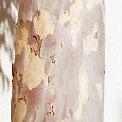 Comments: Evergreen broadleaf native to coastal areas of Queensland and New South Wales, Australia. Waxy yellow-green 6" leaves and a straight white trunk which is mottled with grays and greens. Bark flakes in oval shapes which often leaves dimples in the underlying new bark. This tree is tentatively identified as e. maculata or Corymbia maculata due to recent naming conventions. A similar, much taller, and closer to type tree is located at the "Old" City Hall.
