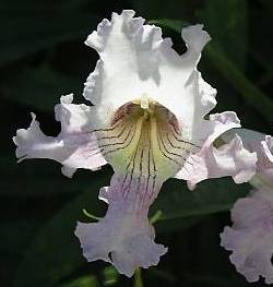 Comments: Deciduous broadleaf hybrid cross of Catalpa bignonioides and Chilopsis linearis (both species are North American). Narrow lanceolate dark green leaves 4 to 7 inches long, Catalpa type flowers, and smooth gray bark which roughens with age. Adult tree to 40'. Hybridization occurred in Uzbekistan in Asia in 1964 before introduction in North America.