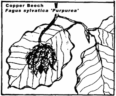 Comments: Deciduous, native in Europe to the Caucasus. After the first hundred years the beech begins to decline. The little beech-nuts are edible and its oval leaves turn a glowing yellow in the autumn. On Arbor Day, 2002, three copper beach trees were planted to replace trees known to be on the property in the past.