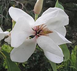 Comments: Broadleaf evergreen flowering tree from Tibet in central Asia. A close relative to the magnolia, this species shares many characteristics; dark green leaves, white to creamy white flowers, and conic to oval mature shape. The specimen is relatively young and therefore small, but mature trees of this species don't get very large--15 to 25 feet tall.