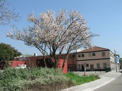 Comments: Deciduous broadleaf native to central and south Asia. Yellow green leaves 2" long with sharp apex, white to pink flowers in late Winter or early Spring. Trees are very drought tolerant and are common in the local hills. Father Junipero Serra brought seeds to plant at the Missions, but later nurserymen were the founders of the California Almond Industry.