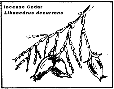 Comments: Conifer, native to mountains of southern Oregon, California and western Nevada. Symmetrical trees give pungent fragrance in warm weather. cones are slender and long. Trees have been known to reach an age of 600 years. Formerly Libocedrus decurrens.